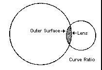 curvature for the outside surface should be 1.5 times smaller than the radius