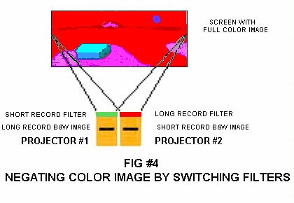 wavelengths through, rather than a single wavelength of light.On the right is what happens when you switch the projector filters. You get an image composed of the original image's complementary colors.