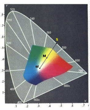 wavelength and Luminosity of a colored light source, you can plot it on the CEI Chromacity